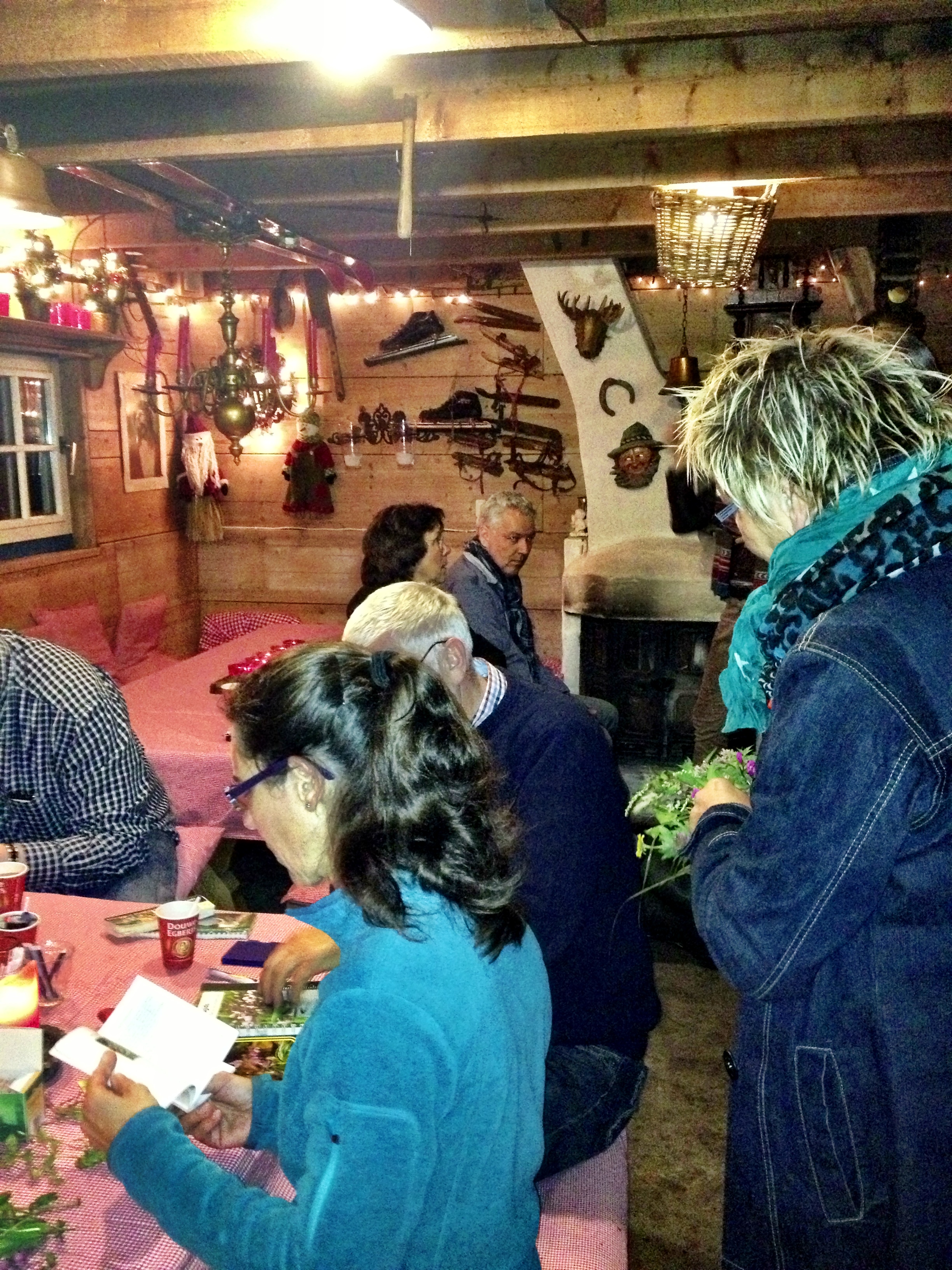 Na ongeveer een uur waren beide groepen enigszins verkleumd weer terug bij de schuur. Onder het genot van een drankje werden de gevonden bloemen en planten opgezocht in de natuurgidsen. Mooie namen kwamen voorbij zoals: zwanebloem, moerasrolklaver, watermunt, kikkerbeet, kattenstaart en wilde Bertram. Na afloop ging iedereen tevreden en de nodige kennis rijker, naar huis. Het was leuk om te ontdekken dat de mooiste plekjes vaak dicht bij huis te vinden zijn!