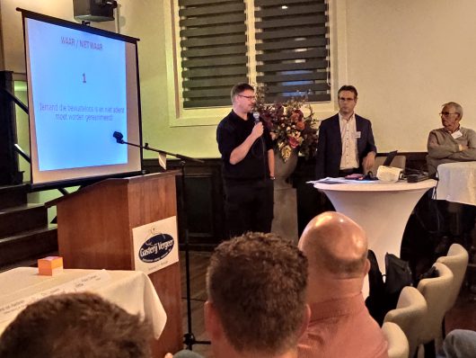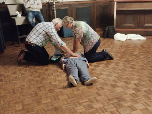 Het Dorpsteam heeft in het voorjaar het zogenaamde motie4-budget gebruikt voor het financieren van reanimatiecursussen met AED voor geïnteresseerde dorpsbewoners. Tijdens de jaarvergadering wilde het Dorpsteam hier nog een keer aandacht aan besteden. René van Aalderen (Van Aalderen Safetytraining & Advies), die ook de reanimatietrainingen had verzorgd, testte eerst de reanimatiekennis van de aanwezigen door middel van een quiz. Hij maakte het de bewoners niet gemakkelijk met vragen als “mag je een AED gebruiken bij iemand met een pacemaker of ICD?”. De bewoners met de meeste goede antwoorden kregen een aardigheidje. Met een nagespeelde reanimatie waarbij de nieuwe voorzitter in spe als onwel wordend slachtoffer figureerde, werden de reanimatiehandelingen getoond. Tot slot was er een film over wat er achter de schermen gebeurt als iemand “1-1-2” belt. Christiaan van der Kamp, zelf burgerhulpverlener, hield daarna nog een gloedvol betoog over het belang van burgerhulpverlening.