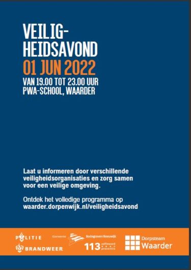 Veiligheidsavond Waarder Nanette Kalisvaart 14 mei 2022Dorpsteam Leave a Comment Ook inwoners van Reeuwijk-Dorp zijn van harte uitgenodigd: