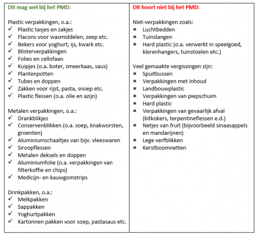 Wat mag wel en wat mag niet bij het PMD-afval: